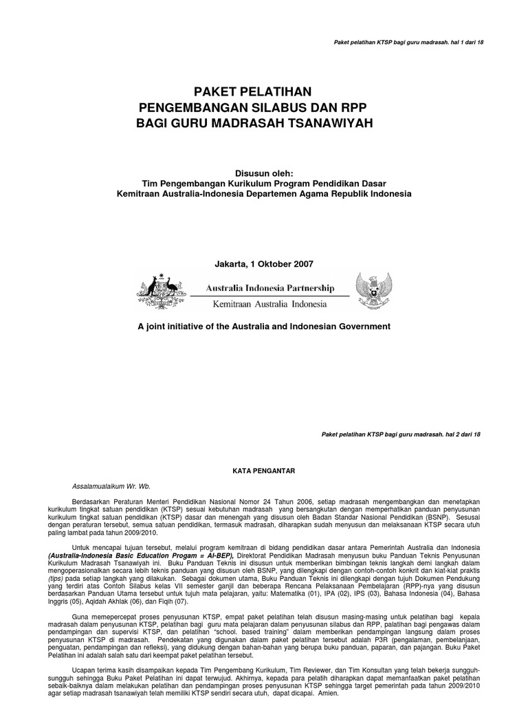 Paket pelatihan pengembangan silabus dan rpp bagi guru madrasah tsanawiyah.